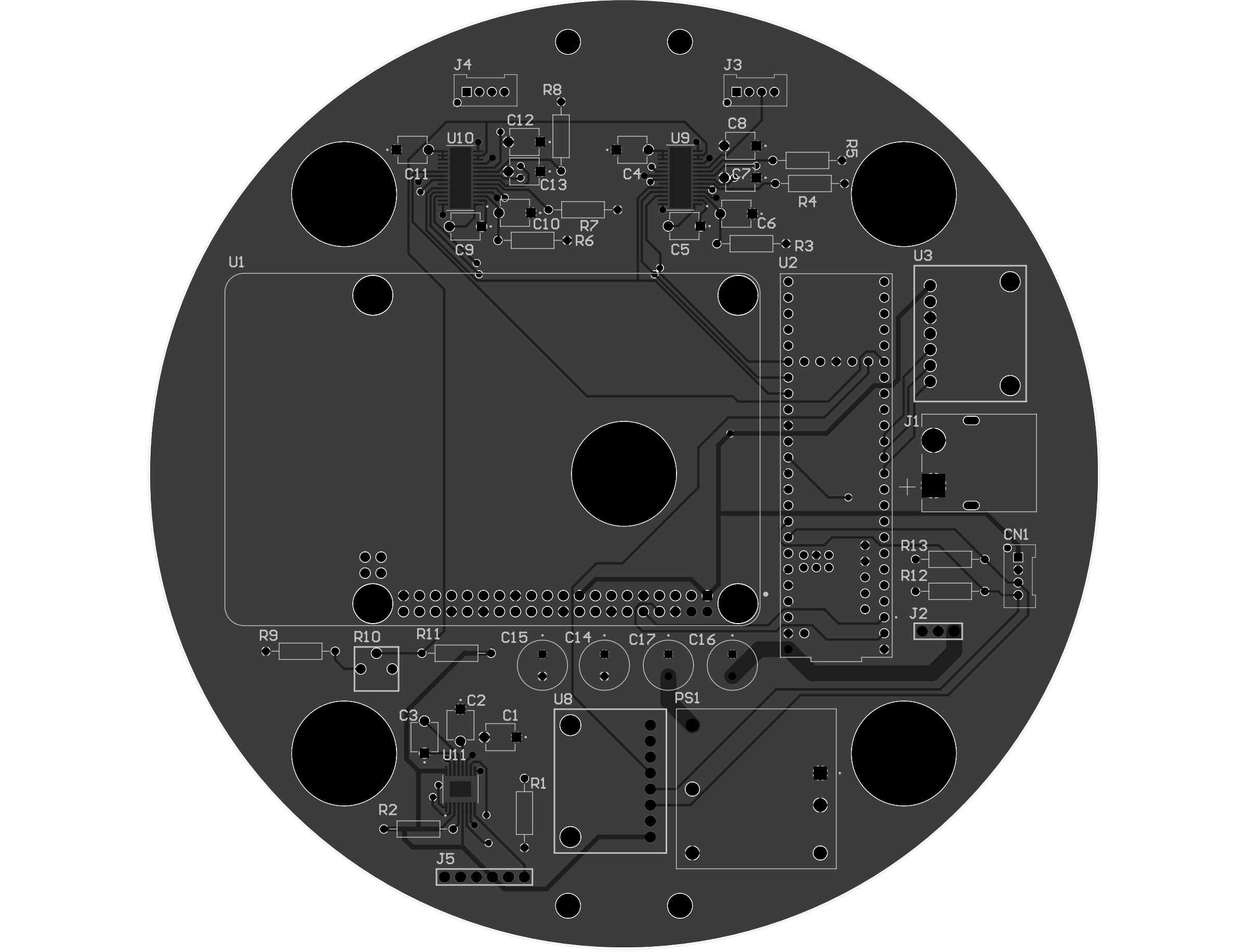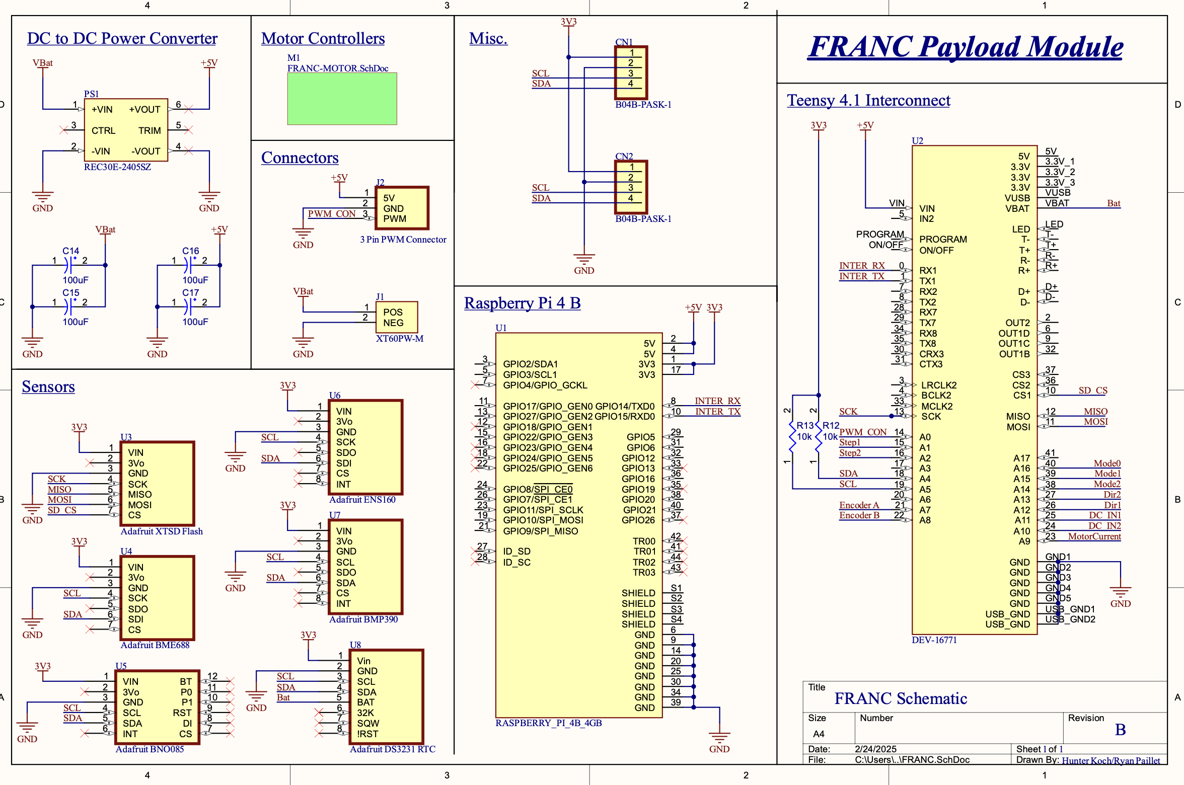 The main PCB was produced in a circular form factor to fit within the payload tube’s available volume. Due to the presence of the dipole antenna running axially through the center, the Raspberry Pi had to be relocated to a structural support pole along the payload’s periphery. This relocation inadvertently placed the USB-A connection to the HackRF in a mechanically vulnerable position during high-G flight conditions.