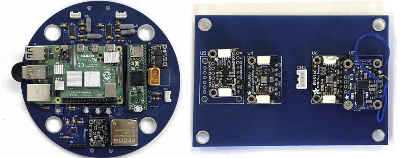 The Teensy microcontroller interfaces with a heterogeneous set of environmental and inertial sensors, sampled at 100 Hz. This update rate was selected as a compromise between the Nyquist criteria for the fastest-varying quantities (e.g., acceleration and pressure derivatives) and the computational/communication bandwidth constraints of the system.
